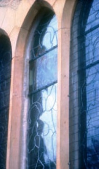 Internally, the change in the position in the glass has surprisingly little impact on the appearance of the stained glass as it is still seen in its original framed opening, albeit with a very different structural support mechanism. However, externally the new protective glazing presents a very different story, even when the glass pane is broken up into small panes of leaded lights which mirror the original glazing pattern. Firstly, the doubling of the lead matrix creates the so-called 'tramline' effect, both inside due to the shadow cast by the lead of the protective glazing, and outside due to the appearance of the original lead through the clear glazing. Secondly, the appearance of the original glass through clear protective glazing, although 'honest', is in itself distracting, as is the reflection off the protective glass. The latter may be reduced by using low -reflective glass, but as yet the best available still shows reflection in raking light. And, thirdly, the use of lead cames with clear glass creates an architectural aesthetic that is very different from that of stained glass and without any historical precedence. In this respect, the use of clear glass sets the protective glazing system apart from the building by denying the importance of what was there before, and by ignoring the stained glass windows' aesthetic and historic contribution to the building, it also denies the whole sense of mystery that stained glass windows have when seen from the outside.