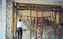 The c1836 roof terrace at 2 Hyde Park Gardens, London, a Grade II listed building, collapsed in 2002 into an unoccupied ground floor room (see top illustration, right). The cause was the failure of a 6.6 metre span cast iron beam supporting a brick jack-arch roof deck. An accretion of successive roof finishes had increased the load on the beam, and corrosion of the beam at its interface with the jack arches had reduced their composite strength. The beam snapped without warning near mid-span, exposing a casting flaw which had been filled with lead. Subsequent investigations revealed that several similar roof terraces of adjacent houses had been reconstructed many years previously.