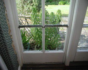 Decay to window frame is evident from condensation on the glazed surface, resulting in water penetration to timber elements which are prevented from drying due to the application of relatively impermeable gloss paint finishes. This had resulted in wet rot decay to the timbers. Original breathable paint finishes had previously allowed drying, preventing decay in the past. |