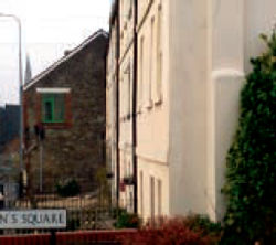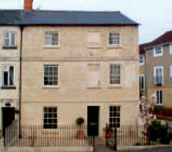 12 London Road, Chippenham: (top ) the front elevation showing new and old stone; (middle) detail over a door showing a lintel cut to shape to accommodate settlement; and (bottom lateral movement in the front elevation due to the decay of embedded timbers both to front and side elevation (note the buttressing). | |