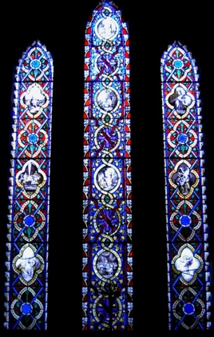 stone infill panel, and are by James Powell of Whitefriars, London. |