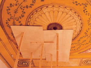 Once a problem has been identified, whether catastrophic physical failure like a ceiling collapse or noting a spreading leak, the subsequent action has a large influence on the success of any conservation and repair. Ceilings are frequently propped in a mad panic with heavy timbers and large sheets of plywood. Whilst effectively restraining the remaining ceiling, it considerably compounds the difficulty of assessment, and may cause more breakage, particularly around perimeter areas that have been forced back against falling debris from the ceiling back. In addition, it can be difficult to remove the props without causing still further damage to fragile plaster.