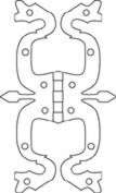 Smaller hinges were used for lighter internal and cupboard doors (see Figure 6, diagrams d, e and f). The most decorative is the cockshead hinge, in use in the Elizabethan period and the first half of the 17th century. A simplified form occurs in a Surrey house of 1656, and there is some evidence to suggest that the type returned to favour in a debased form in the 18th century. H-hinges are common in the late 17th and 18th Centuries; 17th century examples usually have decorative ends, later ones are usually plain. A variant is the very common L-hinge or HL-hinge, used for internal doors in the late 17th and 18th century. Most are plain, but some have shaped ends. Butterfly hinges are particularly common on small cupboards, especially from about 1670 into the 18th century, but some may be earlier. Occasionally both small cupboard hinges and larger door hinges combine a strap hinge with a base-plate which is like half a butterfly hinge.