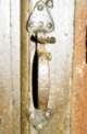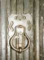 Other types of door furniture include knockers, bolts and key-plates. Door knockers (illustrated below) can be similar to drop handles, but are more often round and are usually positioned so as to knock on a strap hinge or on one of the iron nails holding the door planks together. There are also various types of long knockers, some with a decorative back-plate.