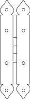 Strap hinges are one of the more prominent forms of ironwork and the ends were often delightfully ornamented in the vernacular manner, the most common designs being a spearhead, a double scroll or heart, and a fleur-de-lys (illustrated below), but some were plainer. Many examples survive from the medieval period onwards.