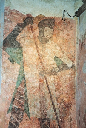 | Monitoring St George: A probe installed by English Heritage monitors variations in the relative humidity and ambient temperature of a magnificent but highly vulnerable wall painting in the castle chapel at Farleigh Hungerford near Bath. |