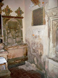 | Left: Internal masonry and artefacts at Christchurch Priory were subject to damage by salts. Monitoring of the structure revealed cyclical efflorescence and deliquescence of hygroscopic salts. Their accumulation within the relatively porous masonry was probably due to sodium chloride present in the original construction and from the environment; and sulphate salts from coal-fired boilers used in the past. Intermittent heating encouraged the salts to accumulate within the surface of vulnerable materials resulting in severe localised damage. Changes in heating and ventilation were essential to ensure the long term conservation of the original fabric. Right: Severe salt efflorescence and spalling affecting decorative masonry in this mortuary chapel were the result of water and salt penetration from defective roof and ground drainage, exacerbated by intermittent heating and occupancy. Environmental monitoring using radio telemetric nodes from GE allowed the heating and ventilation to be modified to achieve optimum conditions for the long term use and conservation of the structure. | |||
