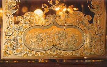 Detail of a public house mirror with brilliant cut, triple etched, gilded and silvered decoration |