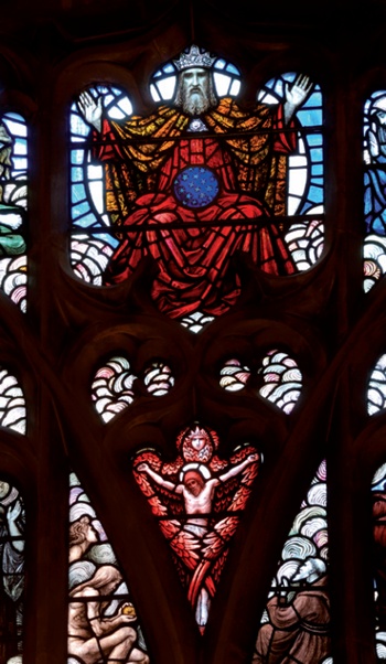 A detail of Christ the King from one of Sir William Blake Richmond’s windows in the north aisle which was cleaned. |