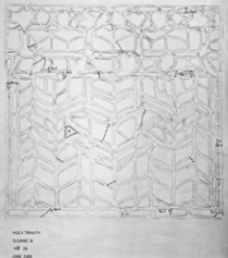 3 Three rubbings were carefully taken from the leadwork of each panel. One of these was used to lay out the glass following dismantling from the lead. The second was used as a guide during re-leading and the third was marked up as a conservation diagram using CBC (Church Buildings Council) annotation.