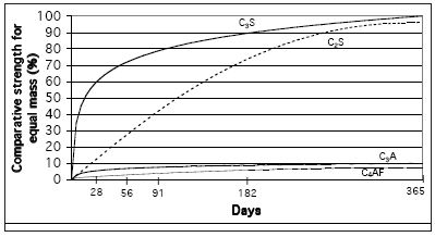 Figure 1 Comparative strength contribution of calcium silicates and aluminates |