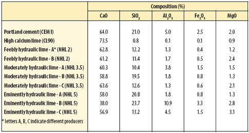 Table 1 Main element oxide composition of hydraulic cements and limes |