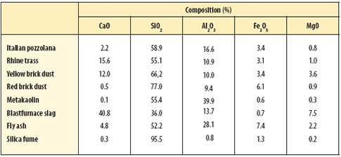 Table 2 Main element oxide composition of hydraulic pozzolans |