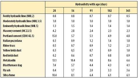 Table 3 Hydraulicity of cements and pozzolana compared with NHL 3.5 hydraulic lime |