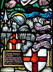These church windows follow a tradition of memorial construction in places of worship that is perhaps as old as churches themselves. Many celebrate the lives of all those who died in a local community, as at St Luke's, Bath, illustrated here. At St Chad's Roman Catholic Cathedral, Birmingham, the memorial window (by Hardman & Co, 1919) has a triptych below it containing the relics of the fallen, including rosaries, photographs, buttons, badges, prayer books and identity books. Some memorial windows were donated by locally-based regiments, companies or organisations which had lost members, such as the South Metropolitan Gas Company memorial window in the retro-choir at Southwark Cathedral, London (also by Hardman & Co, 1923), which is illustrated further down this page. Others celebrate the lives of family members, such as the Wilson family memorial window in St Mary's, Chippenham (by Christopher Whall, 1919), dedicated to the memory of the three sons of Mervyn and Helen Wilson; Captain Herbert Wilson, killed in action at the age of 29 in Mesopotamia in 1917, Evelyn of the East Yorks Regiment killed in Hulluch, France in 1915 aged 23; and their younger brother Mervyn, a captain in the Wiltshire Regiment killed in action seven months later at the age of 22.