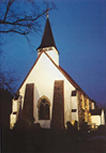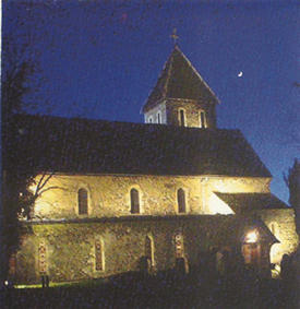 ![]() St Mary's, Northolt. A suburban church but situated in a park, illustrating the importance of designing for the correct level of ambient light and the use of good colour rendering lamps |