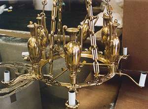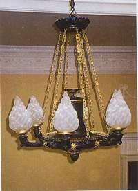 Most Georgian and early Victorian buildings in use today will have had new light fittings installed when their electric supply was first introduced, and these in their turn will have been updated many times since then. Where original chandeliers and wall sconces have survived unaltered, there is considerable scope for using them as originally intended for special occasions, such as a candle lit dinner. However, those fine oil lamps that occasionally survive (mainly in large public buildings and stately homes) are more likely to have been converted to electric. In most cases the loss of the original burner will rule out any possibility of restoring old oil or gas fittings to their original form, but they may be rewired and retained.