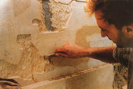 ![]() Mick Barnfields of St Blaise carrying out mortar repairs |