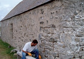 Once the archaeologists had finished, the contractors were able to complete the next stages of the job: minor repairs to the roof and the re-pointing. The specification for the pointing was 1 part naturally hydraulic lime (NHL) of strength class 3.5, to 2–2.5 parts sharp, well-graded sand (3-4mm grit) from Cefn Grainog quarry south of Caernarfon. Shells from the beach were washed to remove the salt and added to the mix to match the original mortar. Visual analysis and a quick dissolution test suggested that the original mortar was very lime rich and that the sand looked identical to that found on the beach. We do not know whether the water in the original mix was fresh or straight out of the sea.