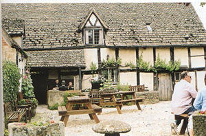 | The George, Norton St Philip, Wiltshire, showing unpigmented limewash on the exterior walls. |