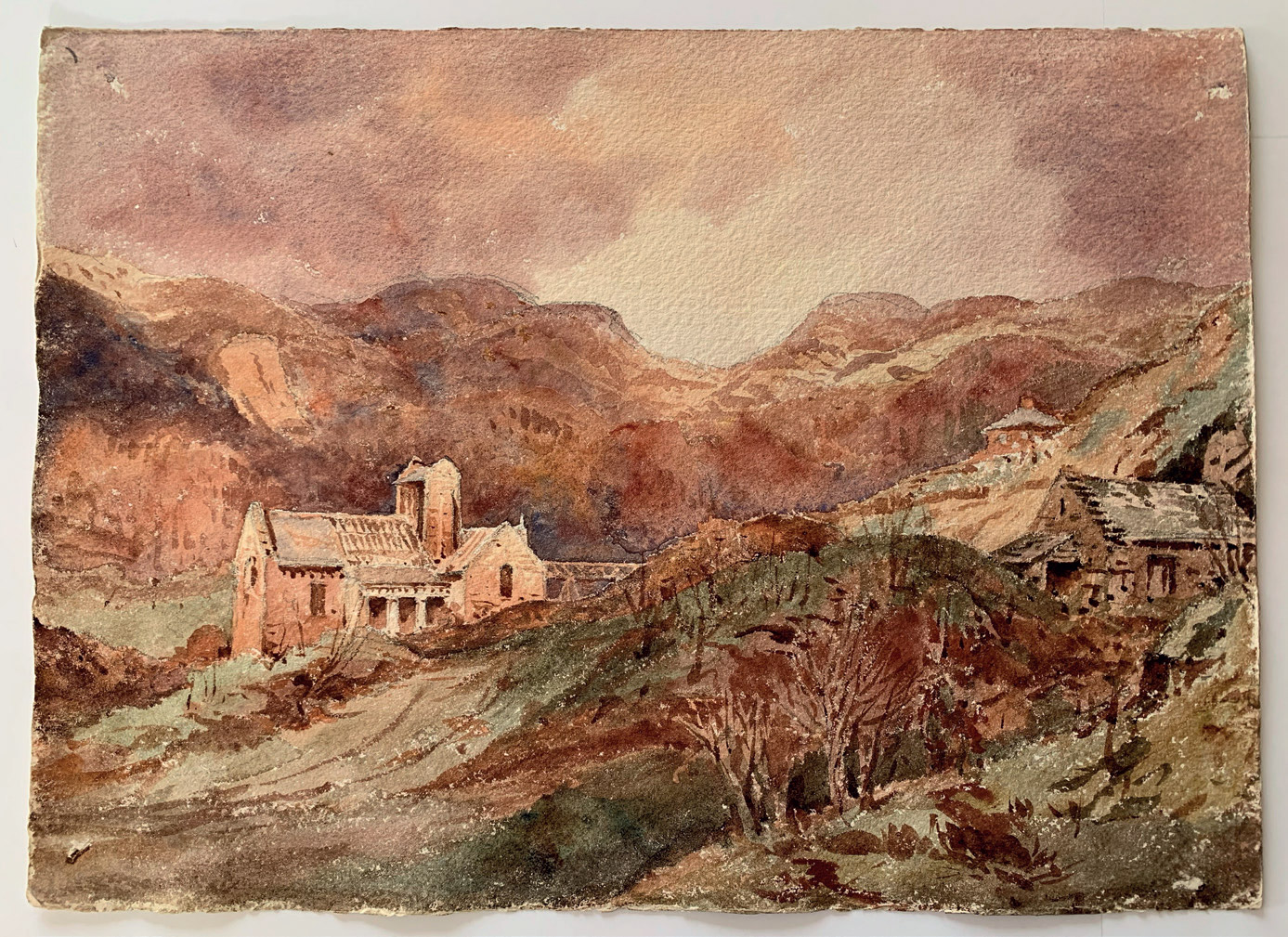 One of the Reverend John Louis Petit’s watercolours showing the construction of St Philips set against the romanticised landscape (Image courtesy of The Rev Petit Society)