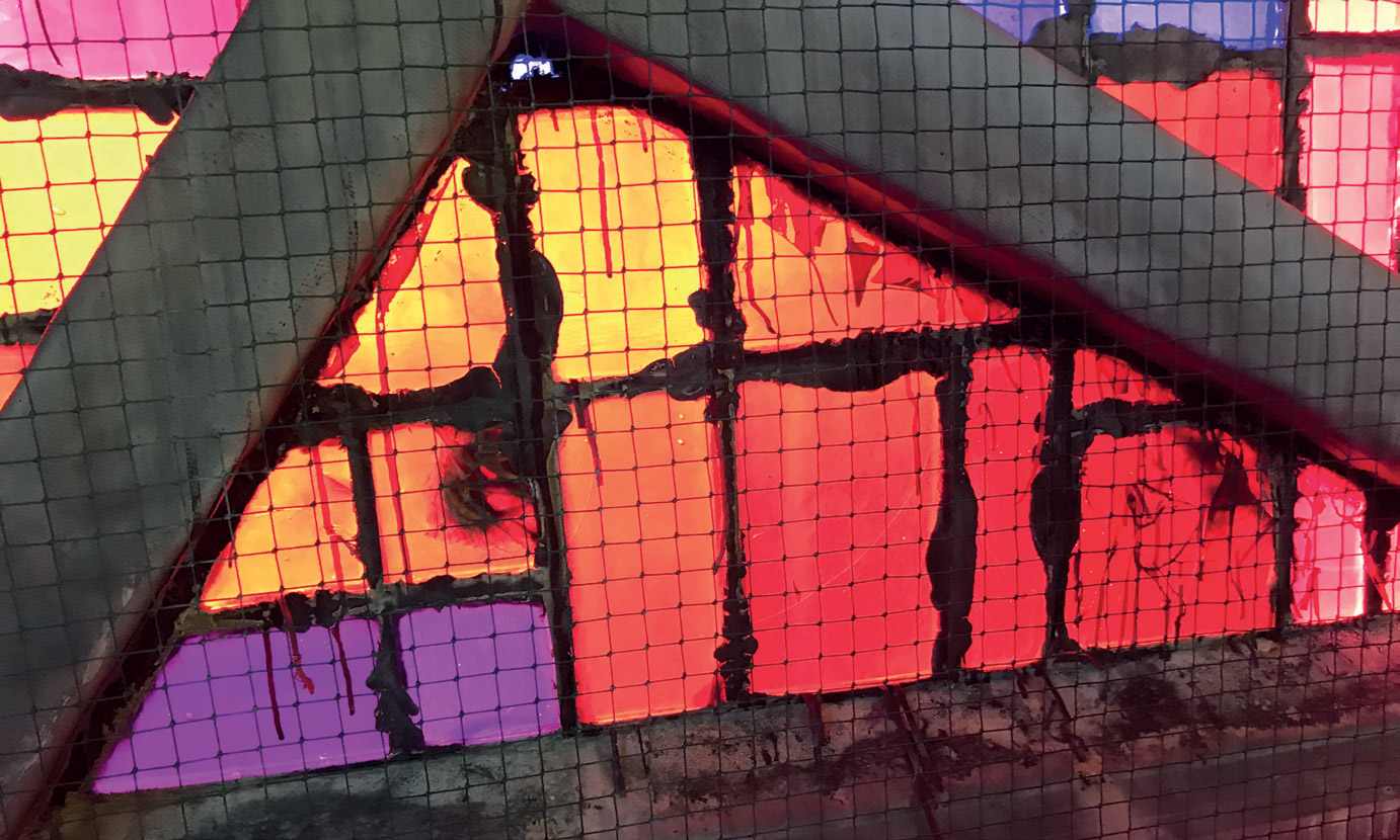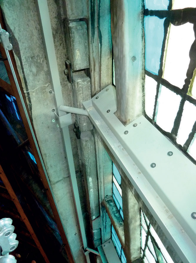 Inherent flaws in the matrix of the stained glass lantern caused water ingress inside the cathedral. |