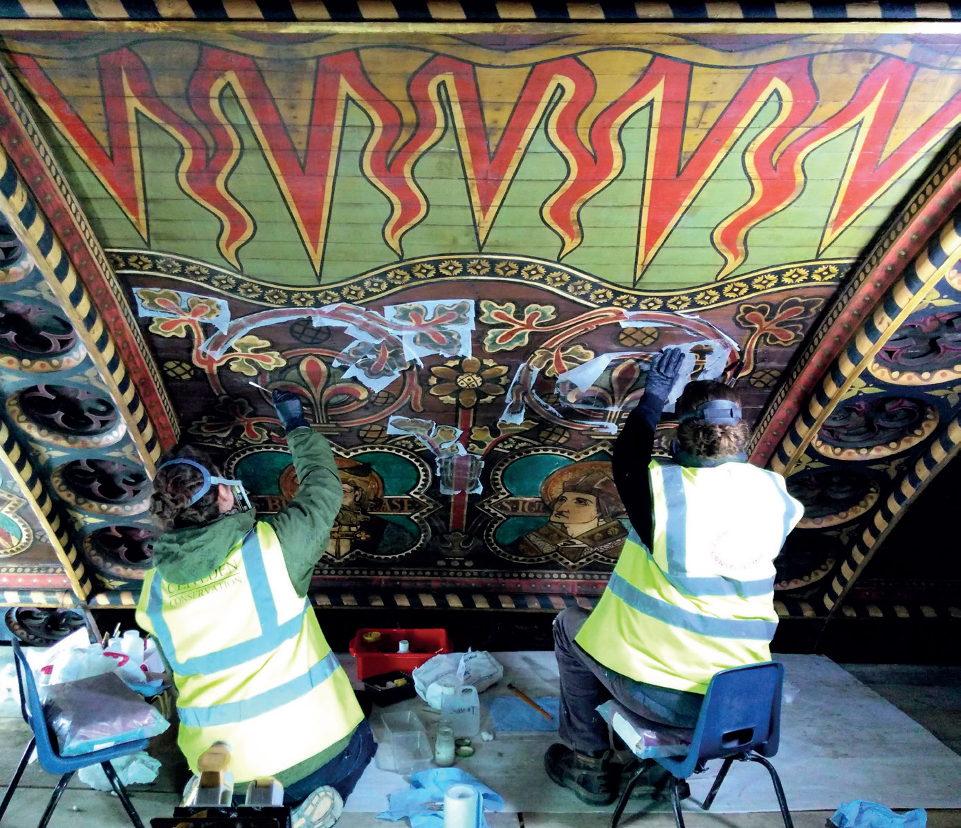 A large part of the conservation project focused on cleaning and conserving the painted ceilings in the nave and chancel.