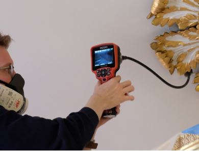 Where access to the topside of the ceiling is not possible, the use of more intrusive inspection techniques should be considered, such as digital borescopes, following negotiation and agreement with the client, conservation officer and other stakeholders (see Figure 7).
