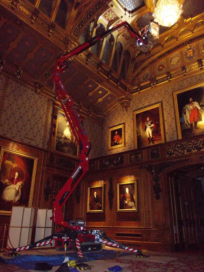 Close up access to the underside and topside of ceilings is advisable to permit hands on inspection of the plasterwork and its supporting structure, as it is important to physically examine both sides as much as practicably possible. This requires access to any voids that may be present above the ceiling. Close up inspection of the ceiling’s visible surface requires the use of a scaffold tower or in loftier spaces a MEWP – a mobile elevated working platform (see Figure 5).