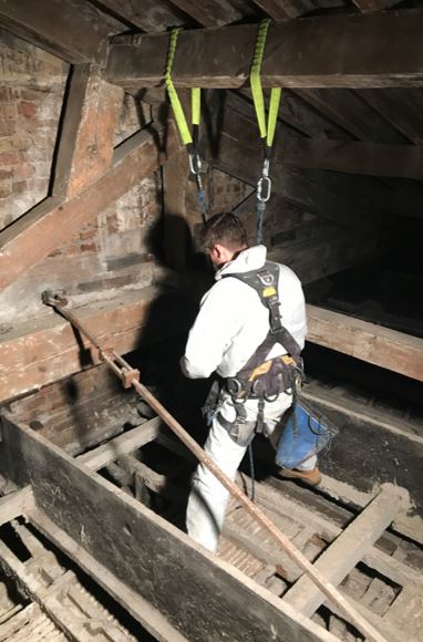 | Figure 6. Rope access is necessary where there is a risk that the ceiling might not support conventional access methods (Photo: Conisbee) |