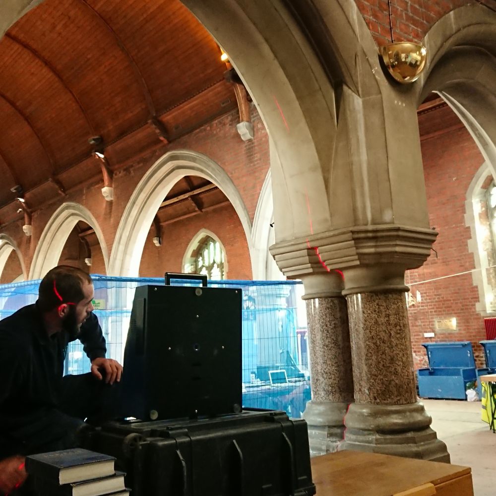 Measuring the space is of particular importance when working in historic buildings because the stonework was hewn by hand. Arches that appear to be perfectly regular often prove to be substantially asymmetrical when the surveyor takes accurate measurements.