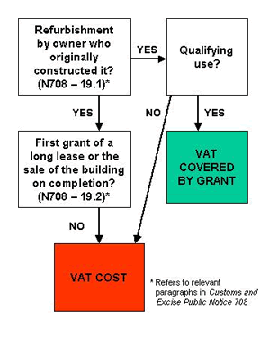 Zero-rating is not granted automatically, and the burden is placed on the owner of the building to 'evidence' or prove that the works undertaken are not liable to VAT at the standard rate. Unfortunately there is no general relief for historic and listed buildings. The relief is dependent on the individual circumstances of the particular project, as illustrated in the flow charts below.