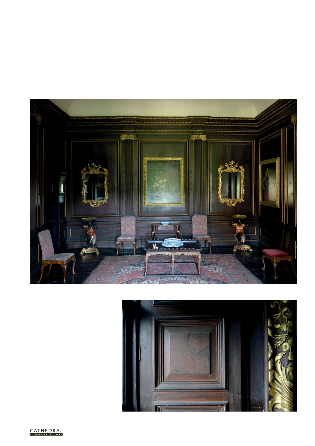 The Balcony Room at Dyrham Park near Bath, and (below) a detail of the walnut graining scheme on one of the shutters. Paint research revealed that this was the room’s