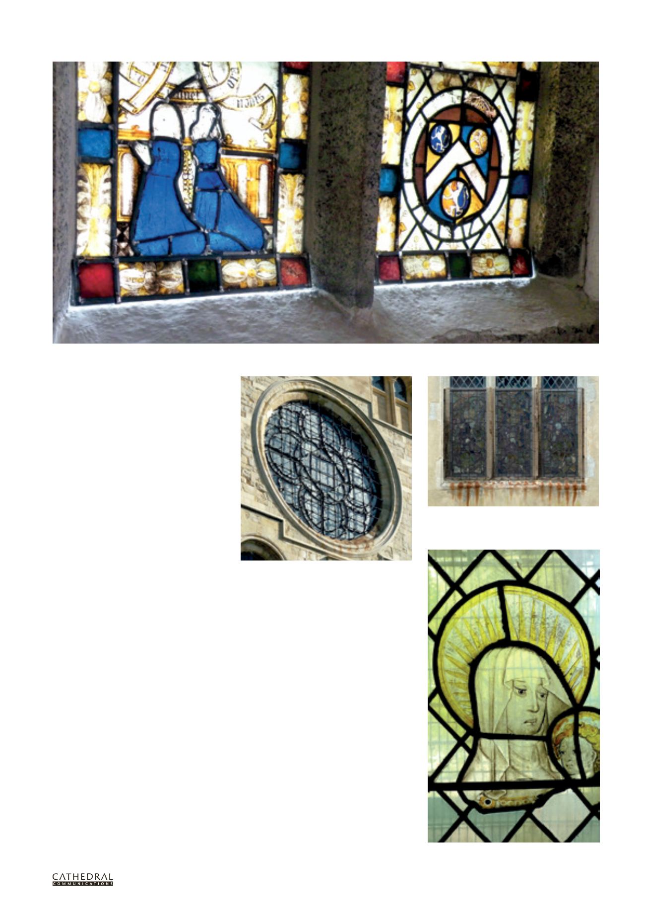 The ventilation gap at the base of an internally ventilated system: in this example the stained glass has been left in the original glazing grooves and the base of the glass tilted