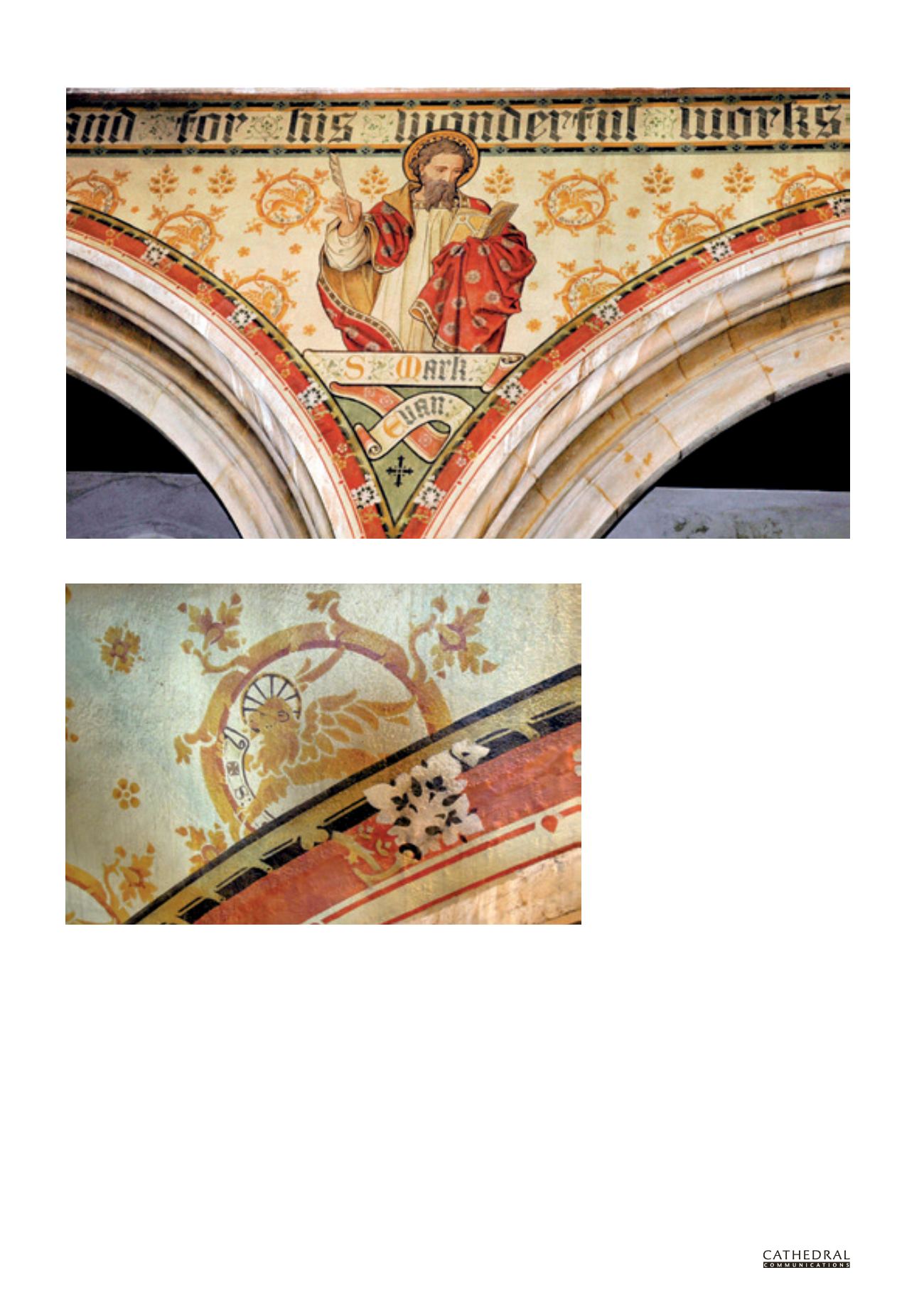 St Mark, one of the Four Evangelists in an impressive late scheme which includes texts, shaded stencils and fictive mouldings; All Saints, Maidstone, Kent, with decorations