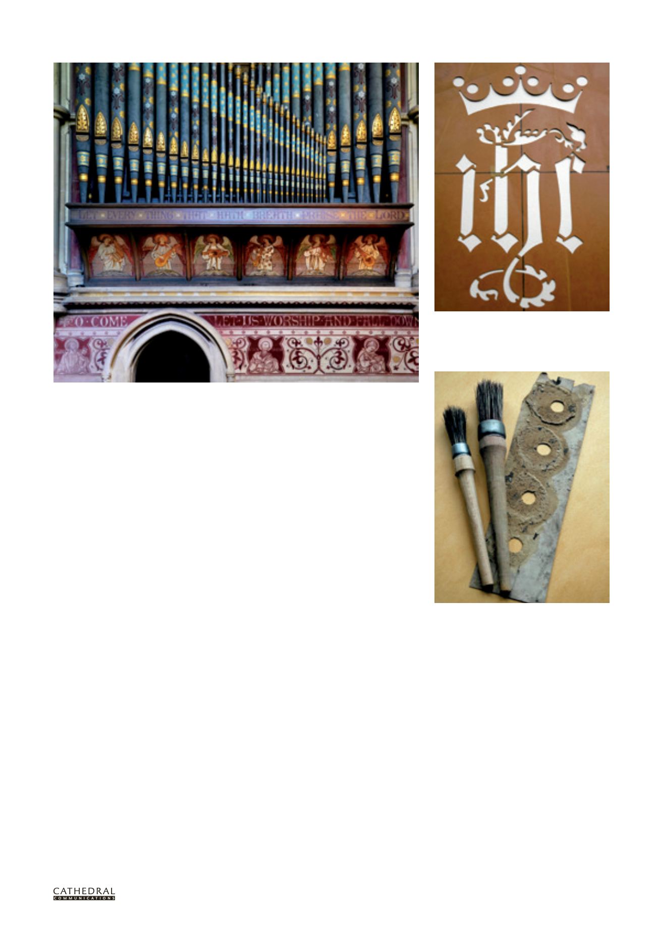 Stencilled and freehand frieze in tempera, with oil-painted organ case above; St John the Evangelist,
