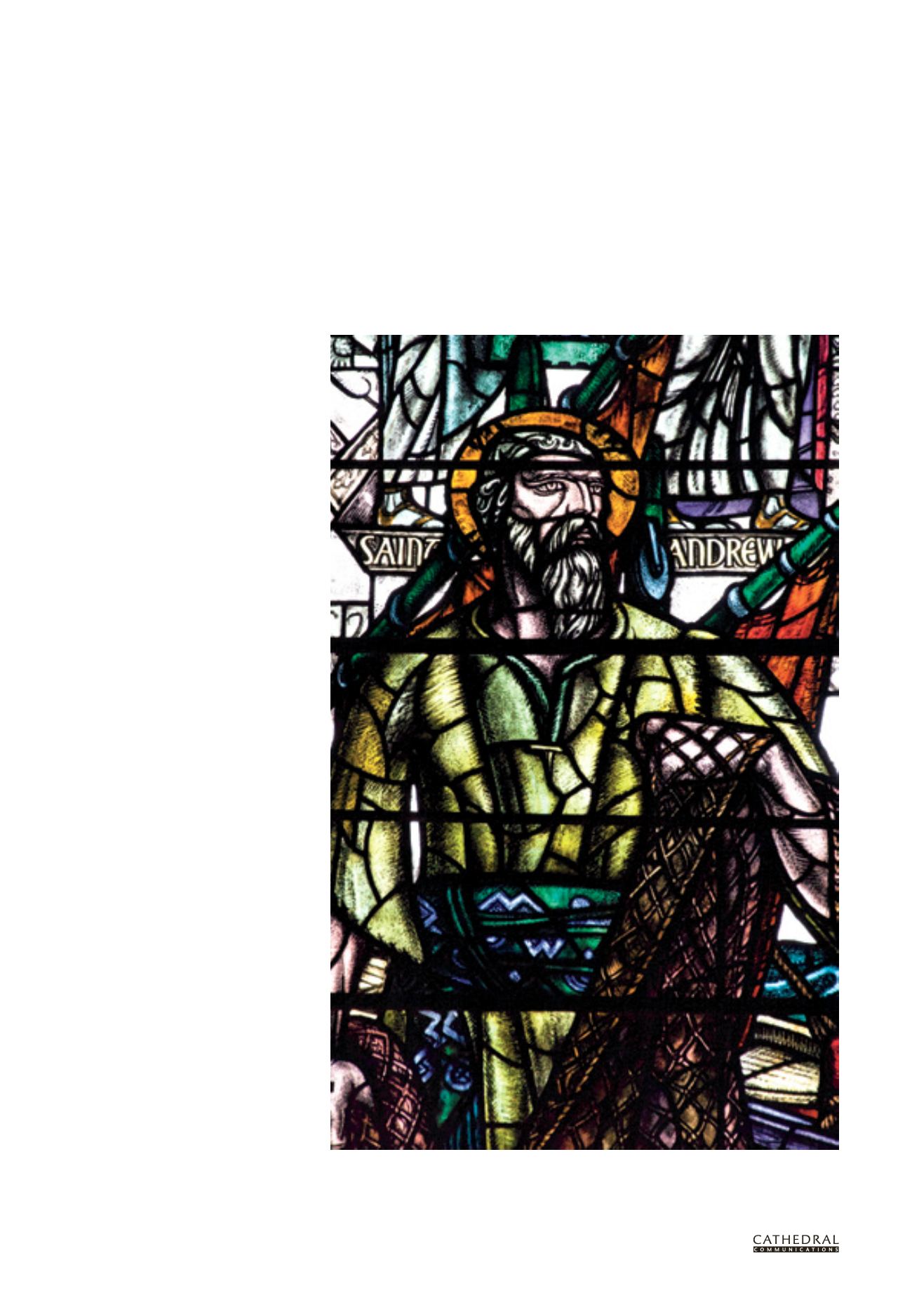 St Andrew (west window, light 1, 1931–7), gifted by Dr James Thomson Bottomley in memory of William