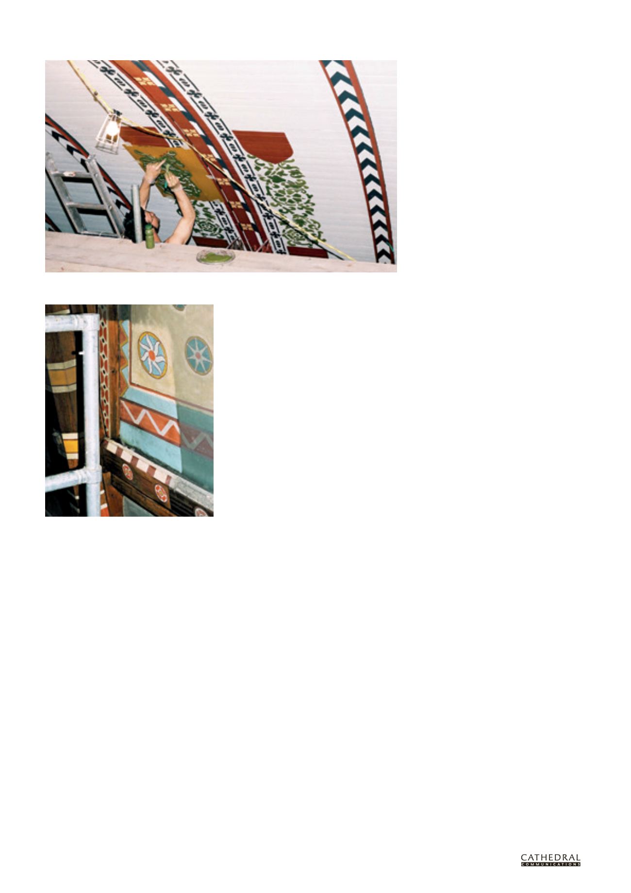 Stencilling in progress during the reinstatement of ceiling decorations in 2005; Bedford School Chapel, Bedford,