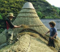 Trainee thatcher Dafydd Driver (right) at work with Alan Jones of Pembrokeshire Thatching